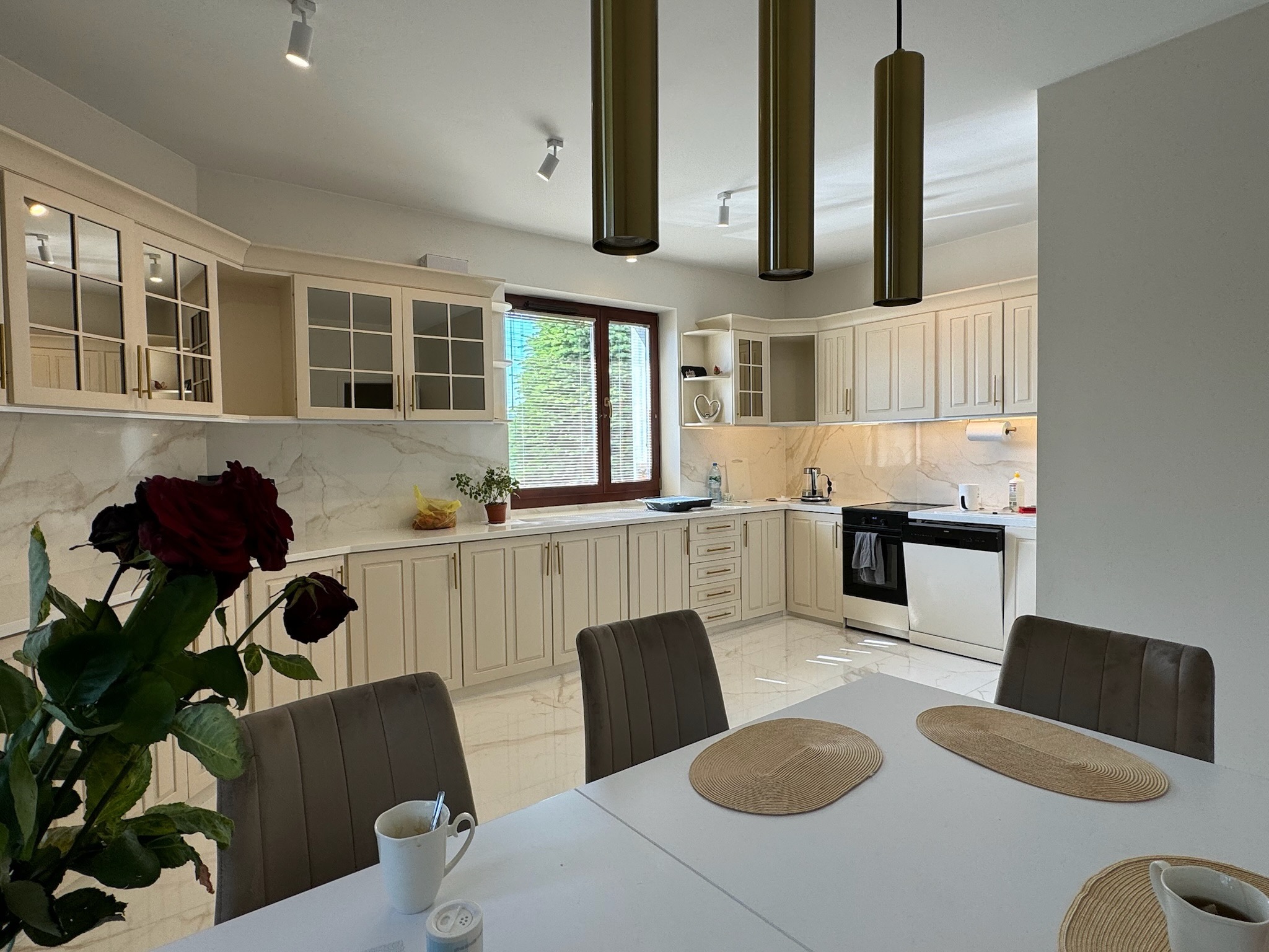 400 m² powierzchni całkowitej, zadrzewiona działka 650 m², pełne podpiwniczenie i dwa tarasy – w tym 42-metrowy z panoramicznym widokiem na miasto i Trójmiejski Park Krajobrazowy. Wnętrza po renowacji, gotowe do wprowadzenia.