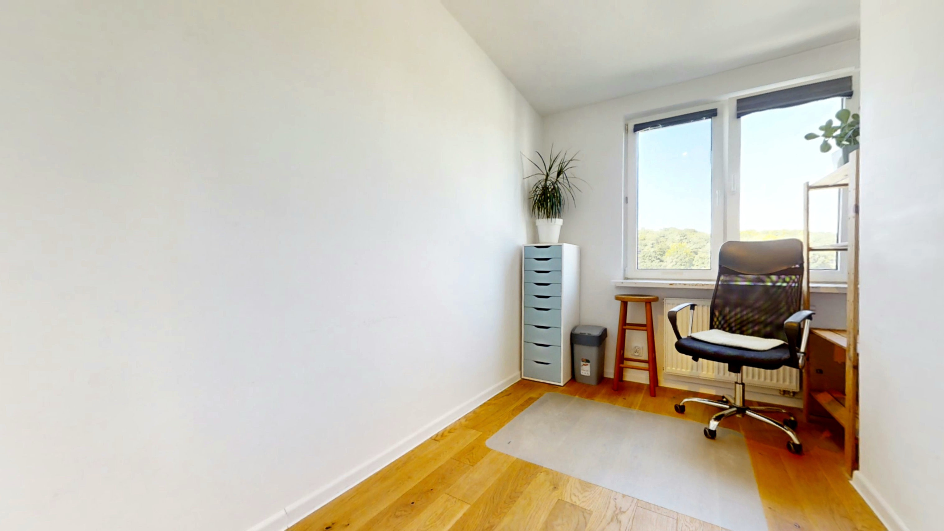 Mieszkanie posiada jeszcze jeden, jasny i ustawny pokój, mogący pełnić funkcję zarówno pokoju sypialnego jak i np domowego biura.