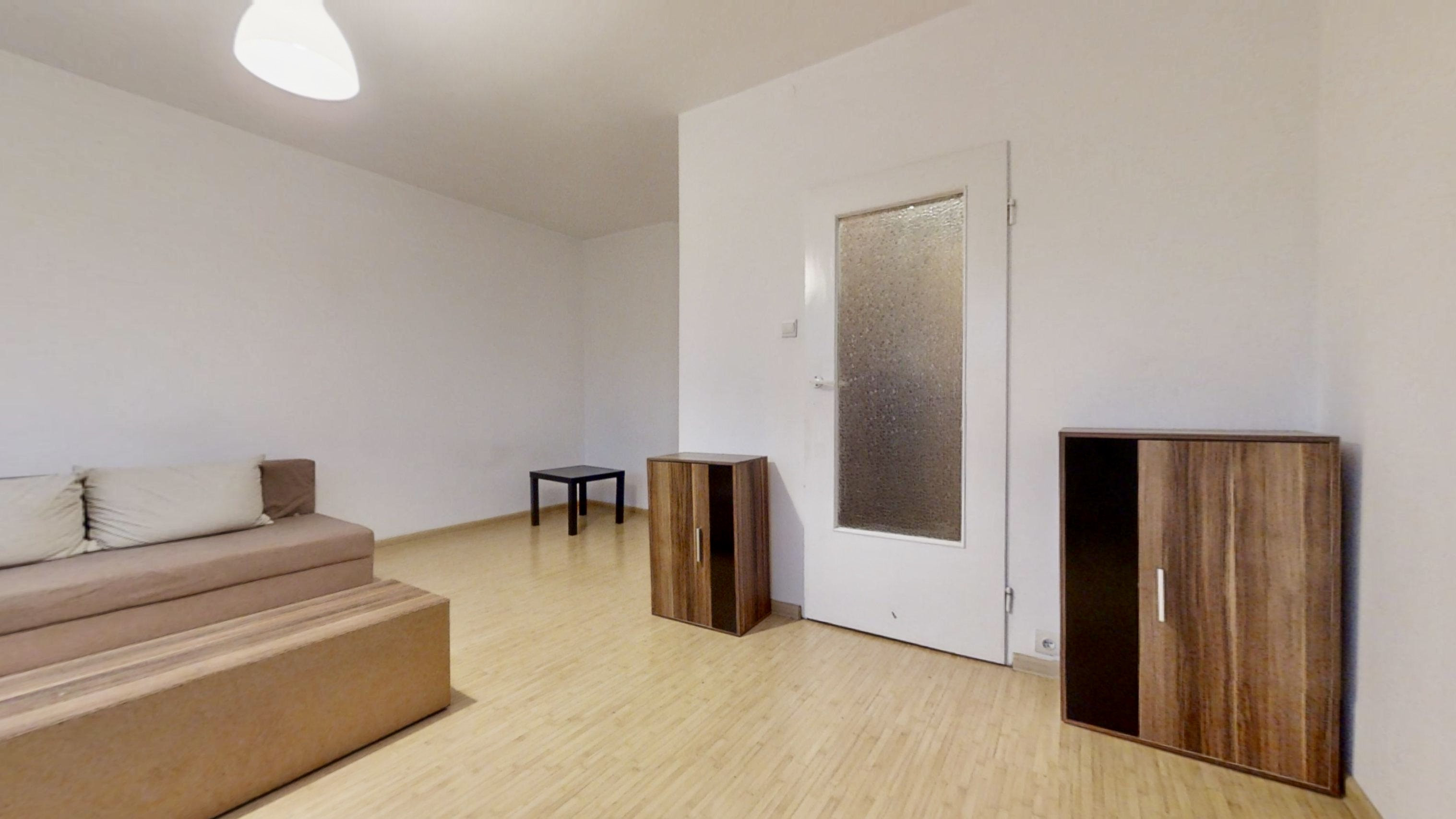 Przestronny i jasny pokój, umeblowanie widoczne na zdjęciach (zabudowa w przedpokoju, meble pokojowe) może pozostać w cenie.